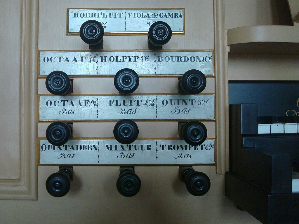 Tweede manuaal: Holfluit 8' - 1867, Viola de Gamba 8' - 1867; C-H uit Holfluit, Roerfluit 4' - 1867.